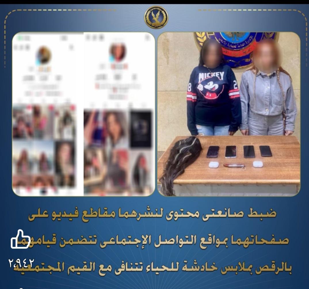 وزارة الداخلية تضبط صانعتي محتوي بنشر مقطع فيديو على صفحاتهما بمواقع التواصل الإجتماعى