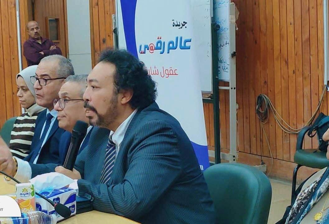 جاء ذلك خلال فاعليات الدورة التاسعة عشر لمبادرة ” الإبداع.. طريقك للنجاح" والتي تنظمتها جريدة" عالم رقمي " للعام التاسع عشر علي التوالي بالجامعات برعاية الأستاذ الدكتور أحمد المنشاوي رئيس الجامعة وأدارها الكاتب الصحفي خالد حسن رئيس تحرير “عالم رقمي ومشاركة كل من الأستاذ الدكتور أحمد عبد المولى نائب رئيس الجامعة لشئؤن التعليم و الطلاب ، والاستاذ الدكتور علاء عبد الحفيظ محمد عميد كلية التجارة بجامعة " اسيوط " ، أ.د أمل الدالي وكيل الكلية لشئون خدمة المجتمع وتنمية البيئة ، أ.م.د مروة بكر رئيس قسم العلوم السياسية بالكلية ومنسق الانشطة الطلابية ، والعميد ايمن عياد مدير معهد تكنولوجيا المعلومات فرع اسيوط ، والمهندسة مريم ثابت مسؤل ريادة الاعمال بمركز الإبداع التكنولوجي وريادة الأعمال فرع اسيوط ولفيف من أعضاء هيئة التدريس والجهاز الاداري كما شارك في الندوة عدد كبير من طلاب البرامج المختلفة .