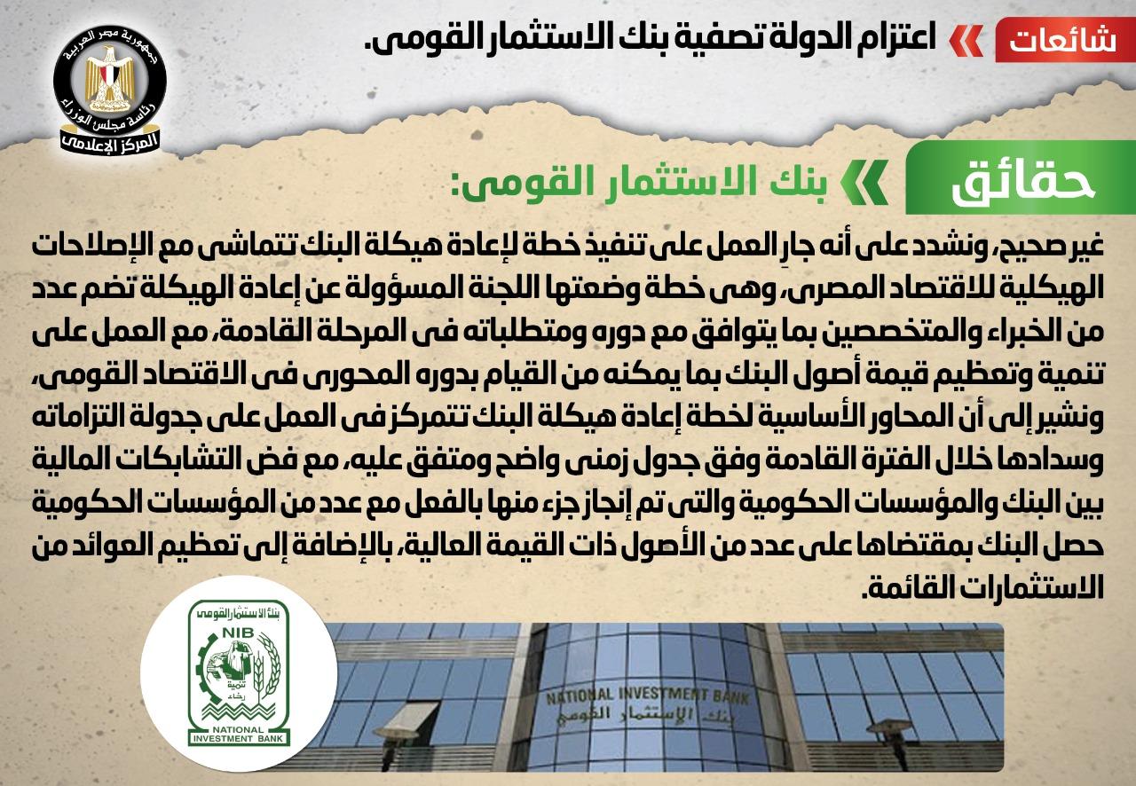 نفي اعتزام الدولة تصفية بنك الاستثمار القومي