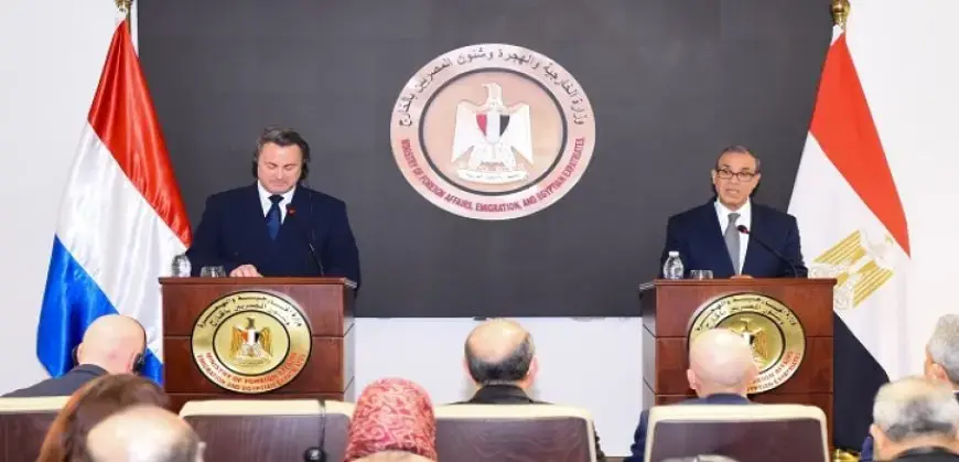 عبد العاطي خلال مؤتمر صحفي مع وزير خارجية لكسمبورج: نعمل بجد لتأمين التوصل لصفقة لحقن دماء الفلسطينيين