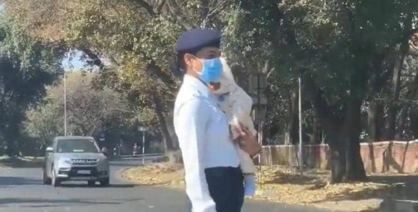 شرطيه هنديه تعمل و هي تحمل رضيعها