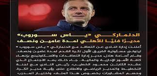 الأهلى يعلن رسميًا التعاقد مع الدنماركى ياس سوروب مديرًا فنيًا لمدة عامين ونصف